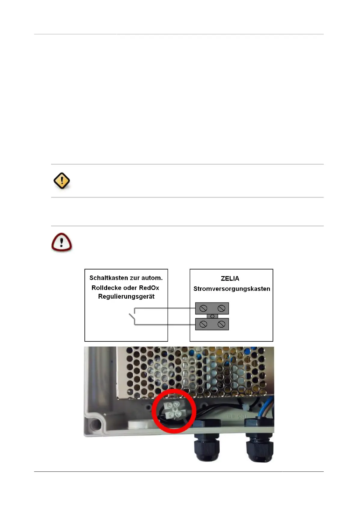 5.2.2. Kontakt für Abdeckung oder RedOx-Regeleingang