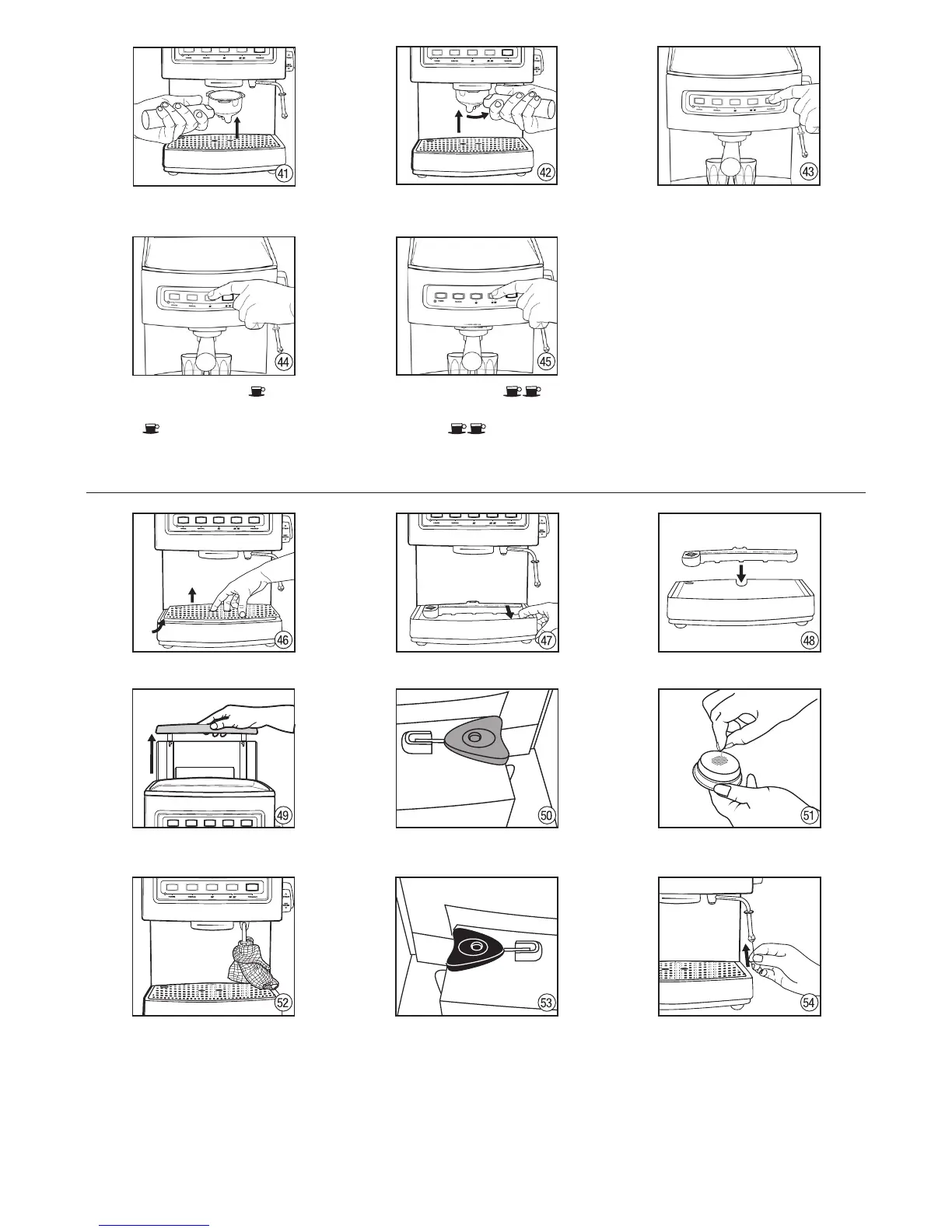 Use the grey pin to clean the holes of the coffee fi lter.
