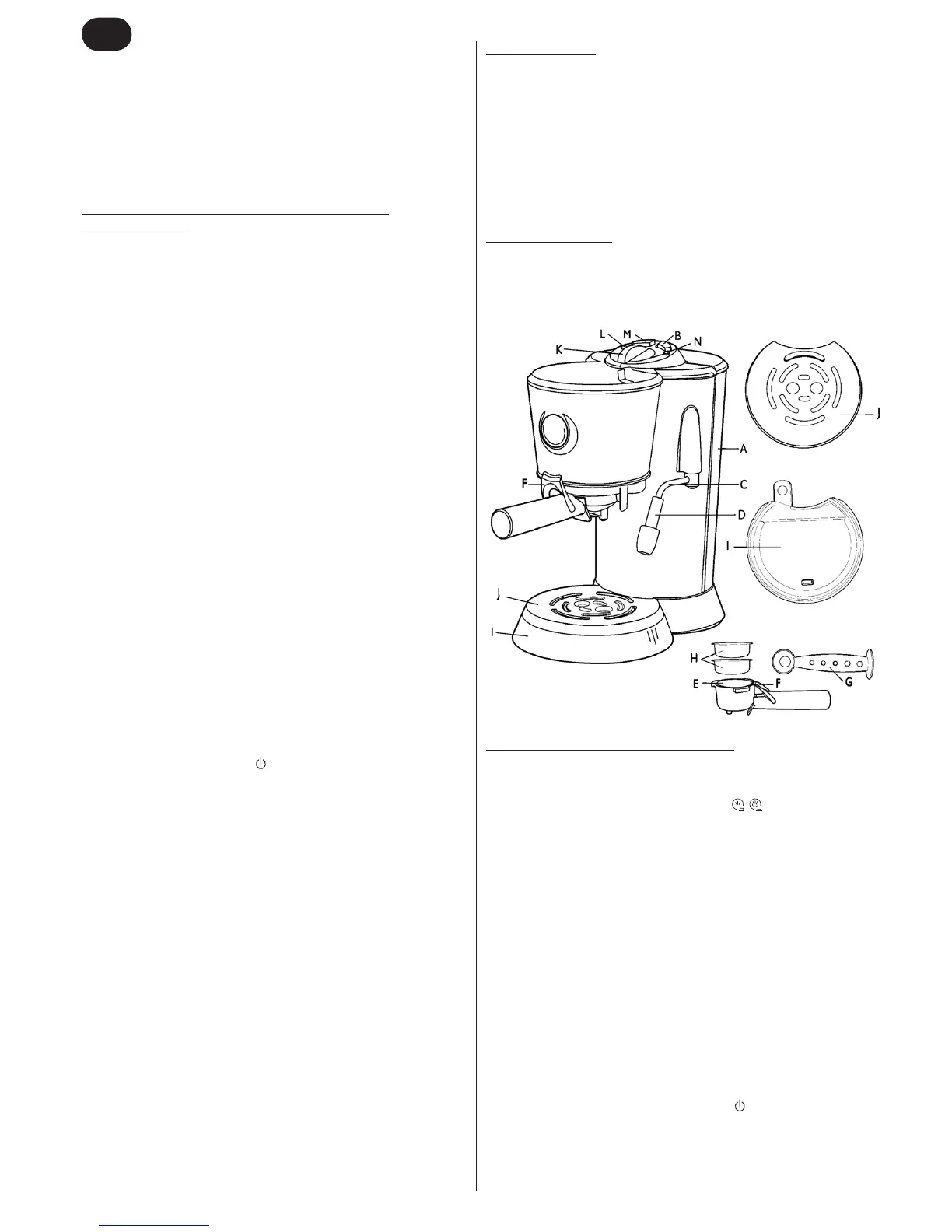Установлюйте кавоварку на плоскій, рівній поверхні. ●