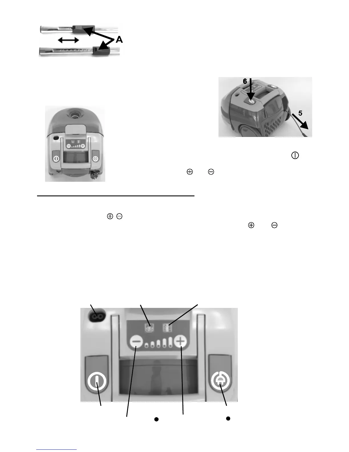 − нагласете дължината на телескопичната смукателна тръба