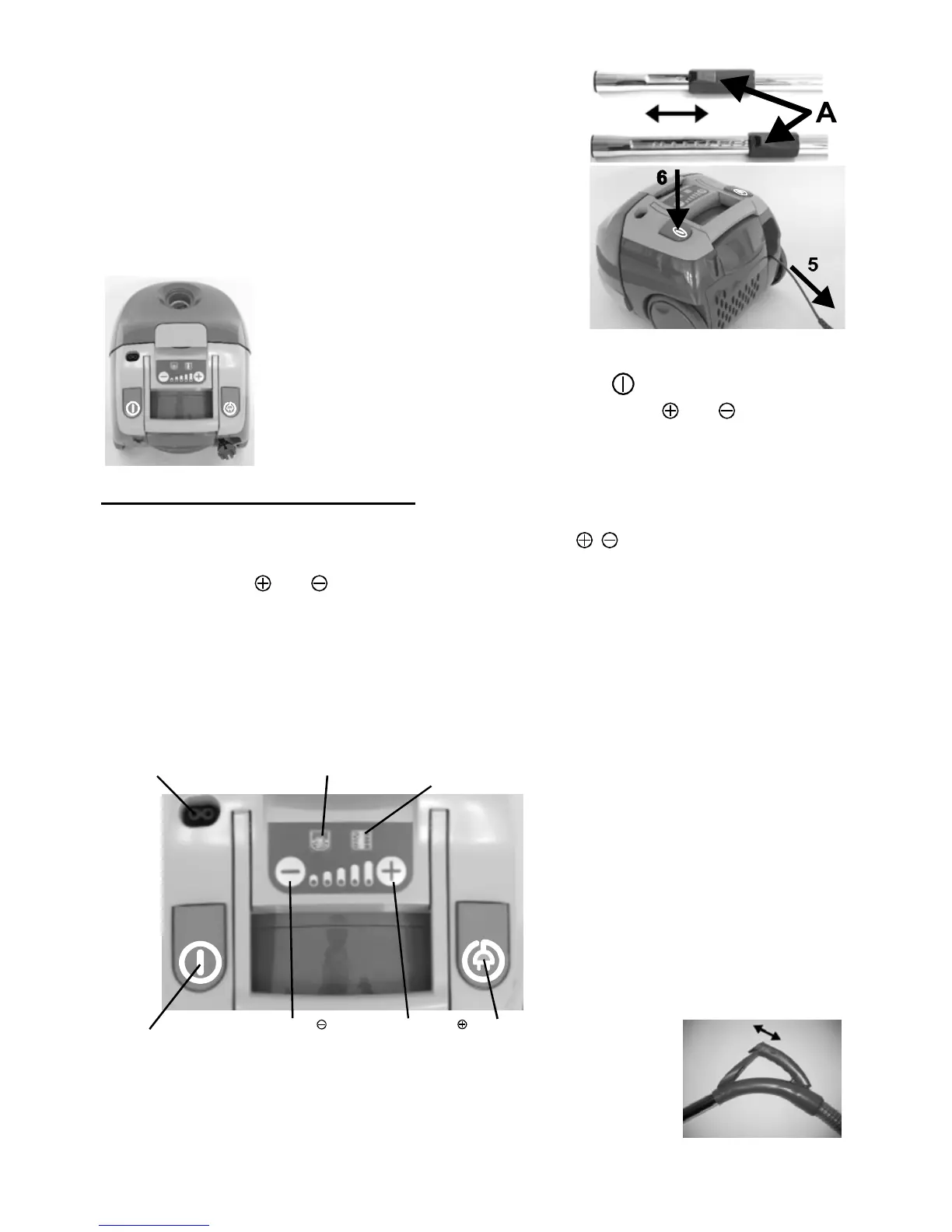 aspirare, amplasată pe mânerul furtunului. Pentru a micşora puterea de