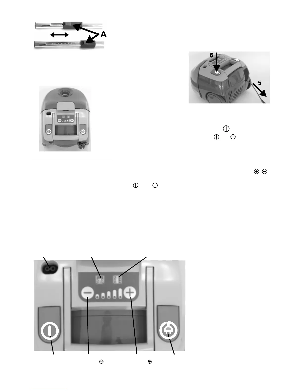 mocy odkurzacza. Regulacja mocy odbywa się za pomocą dwóch, mikroprzełączników (
