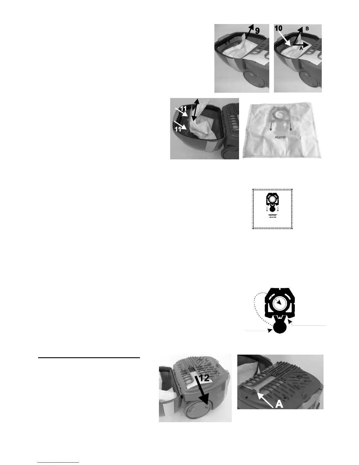 dovnútra (A) a vytiahnite vrecko ťahaním nahor (B),