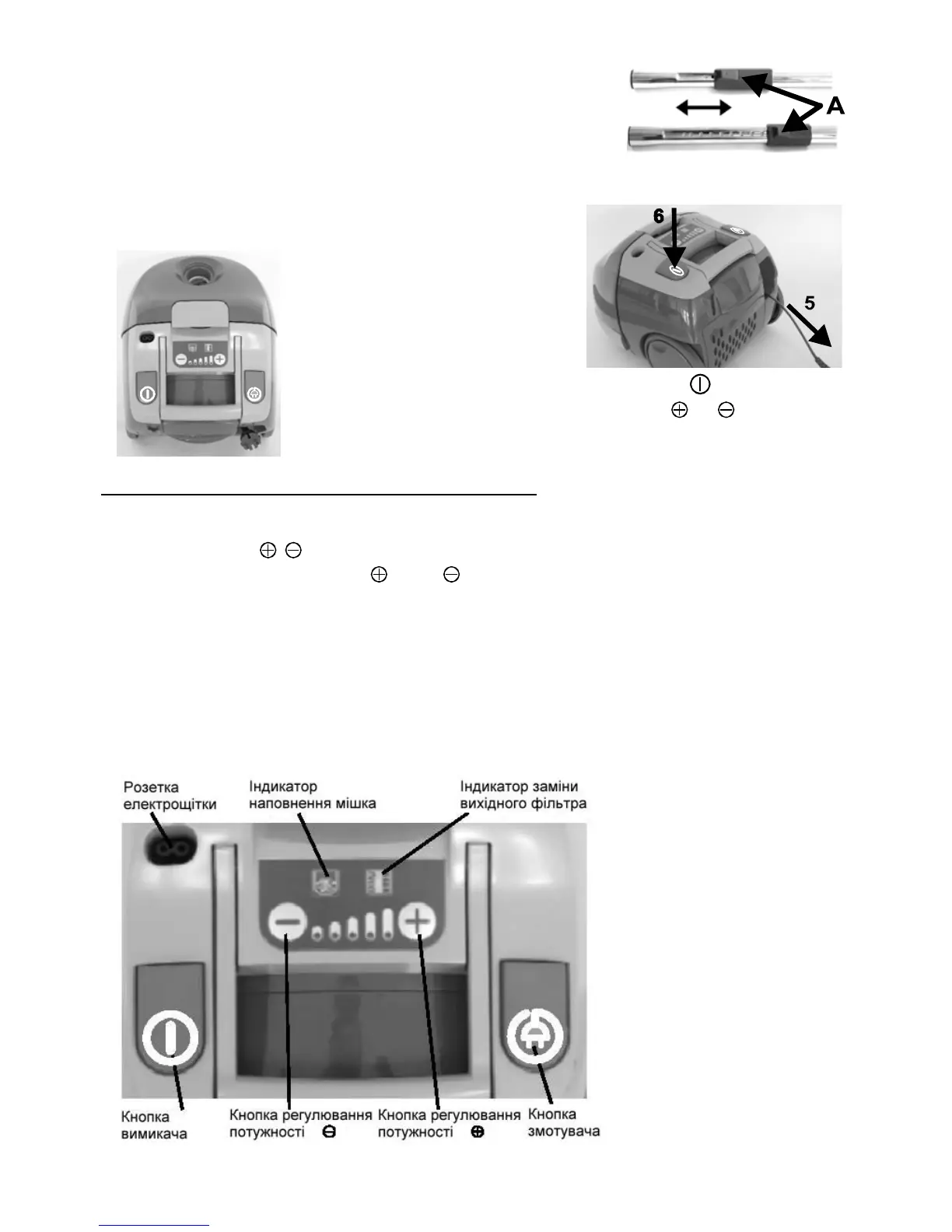 − витягніть провід живлення (5) з корпуса порохотяга і вставте штепсель в електророзетку.