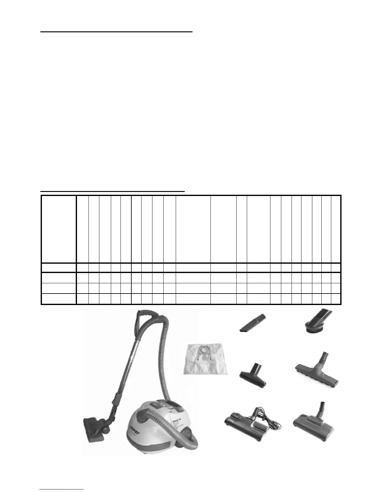 109BTYPES OF THE 1600 VACUUM CLEANER
