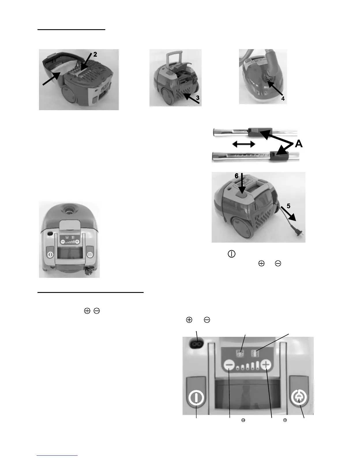 − make sure there are bag (1), inlet filter (2) and outlet filter (3) in the vacuum cleaner chamber,