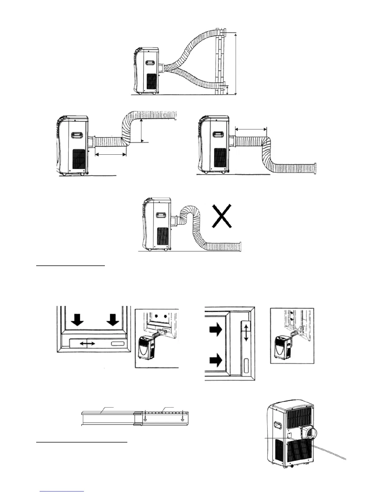 Przykład niewłaściwego położenia wylotowego węża. Może to spowodować nieprawidłowe działanie klimatyzatora lub jego awarię.