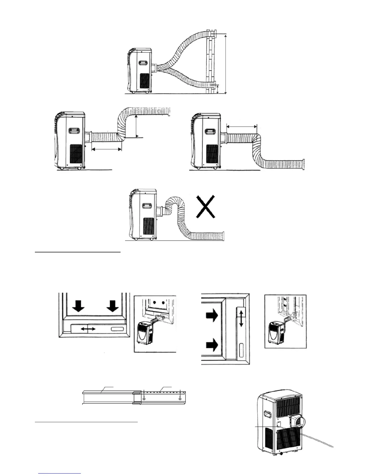 Приклад невідповідного розміщення вихідного шланга. Це може привести до неправильної дії кондиціонера або його аварії.