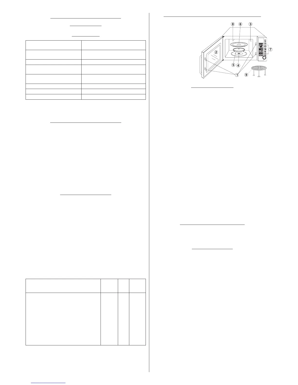 230 V~ 50 Hz, 1200 W (Microunde)