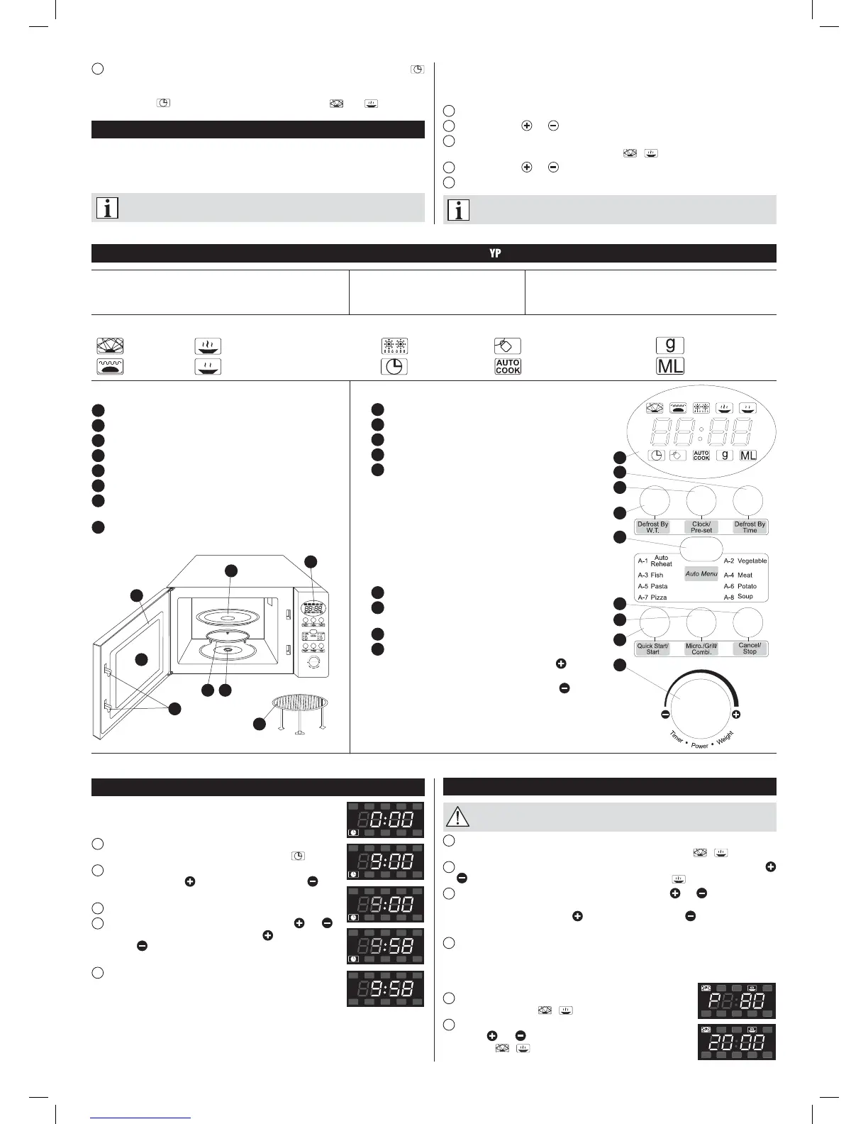 Mikrofale Moc bardzo wysoka i wysoka Rozmrażanie Blokada rodzicielska Waga w gramach