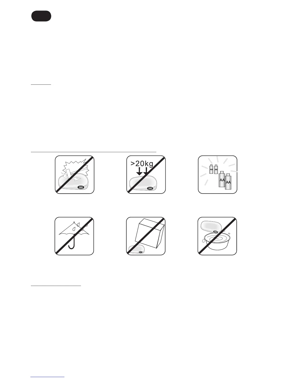 Neukladajte veci na váhe. Neponárajte váhu do vody.