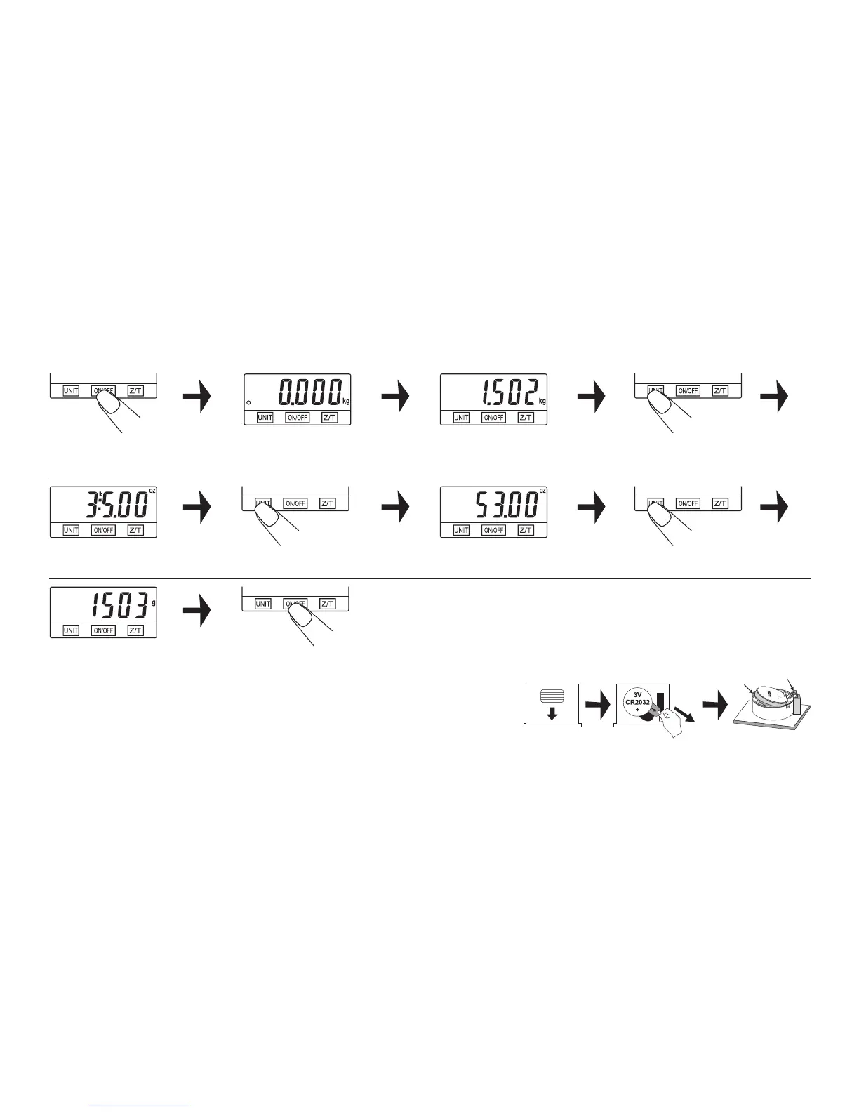 spauskite mygtuką UNIT (2), jeigu norite pakeisti svorio vienetus svėrimo metu.