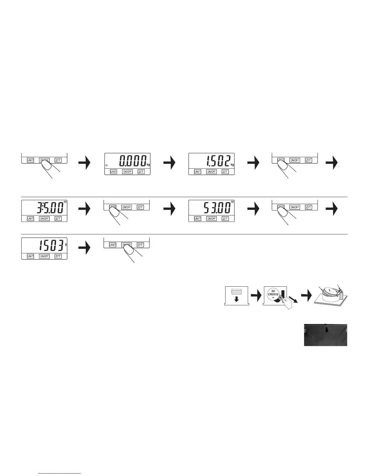 przycisk UNIT (2), aby przeliczyć jednostki wagi w trakcie ważenia.