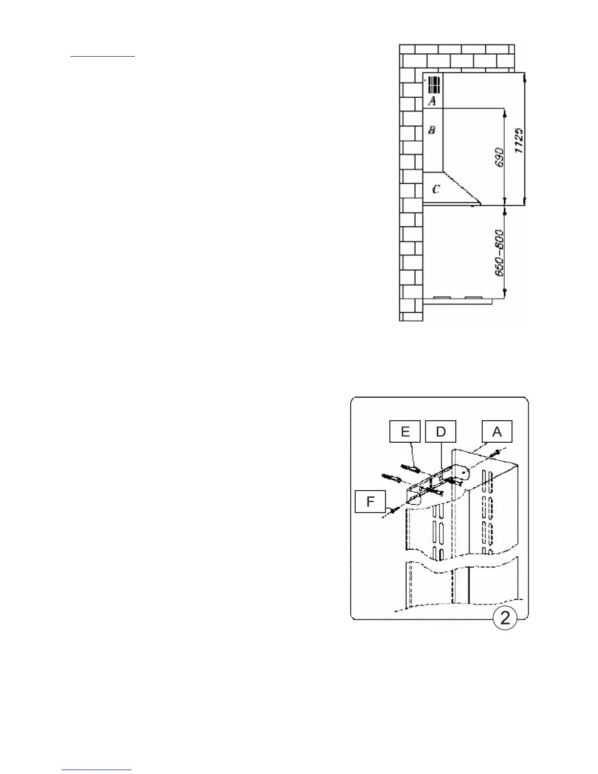 1. Prindeţi de perete carcasa hotei C.