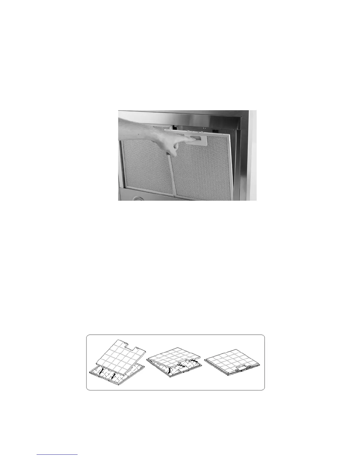 b) Свалете въгления филтър, който се намира вътре в аспиратора на корпуса на