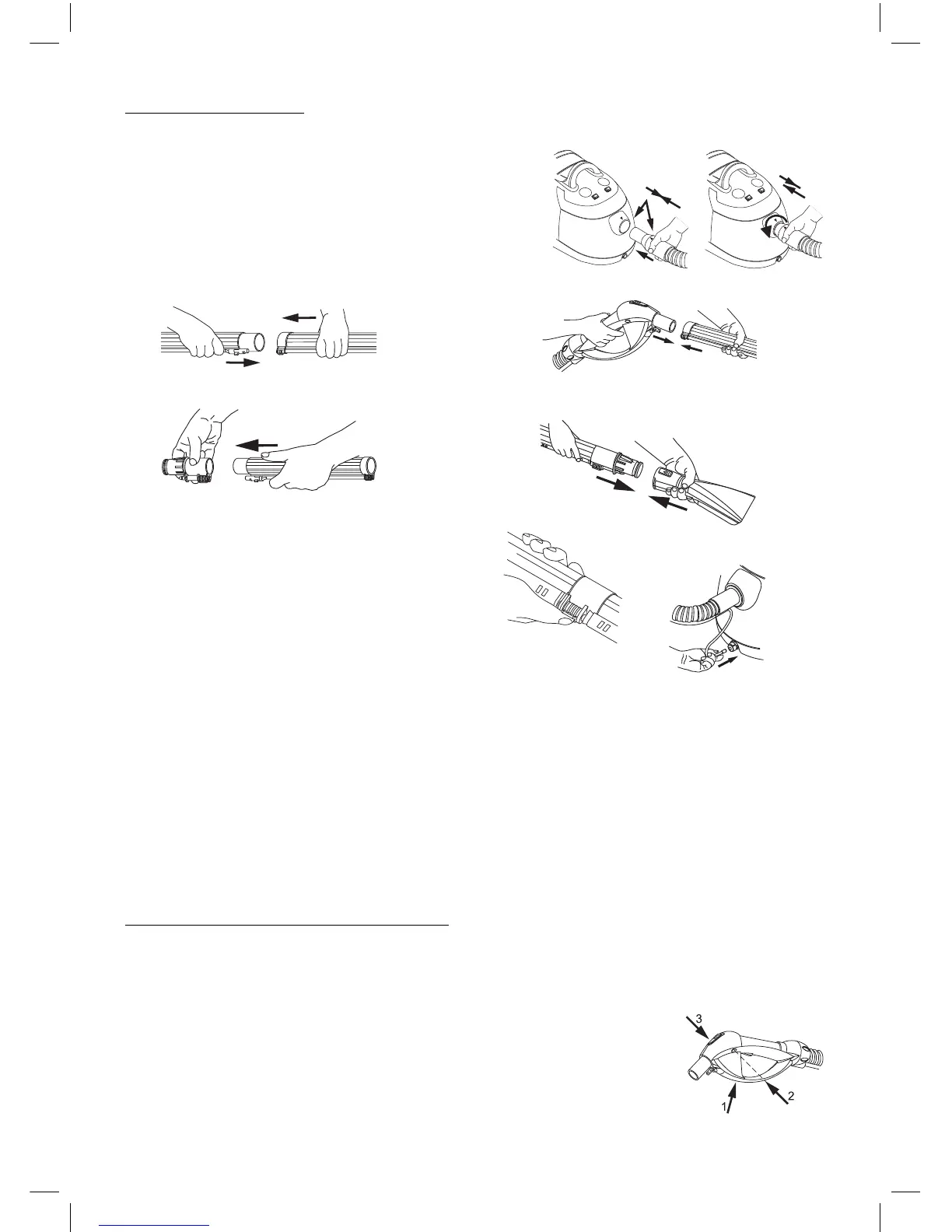 To remove liquids and for wet or steam cleaning use the detergent/steam hose and extension