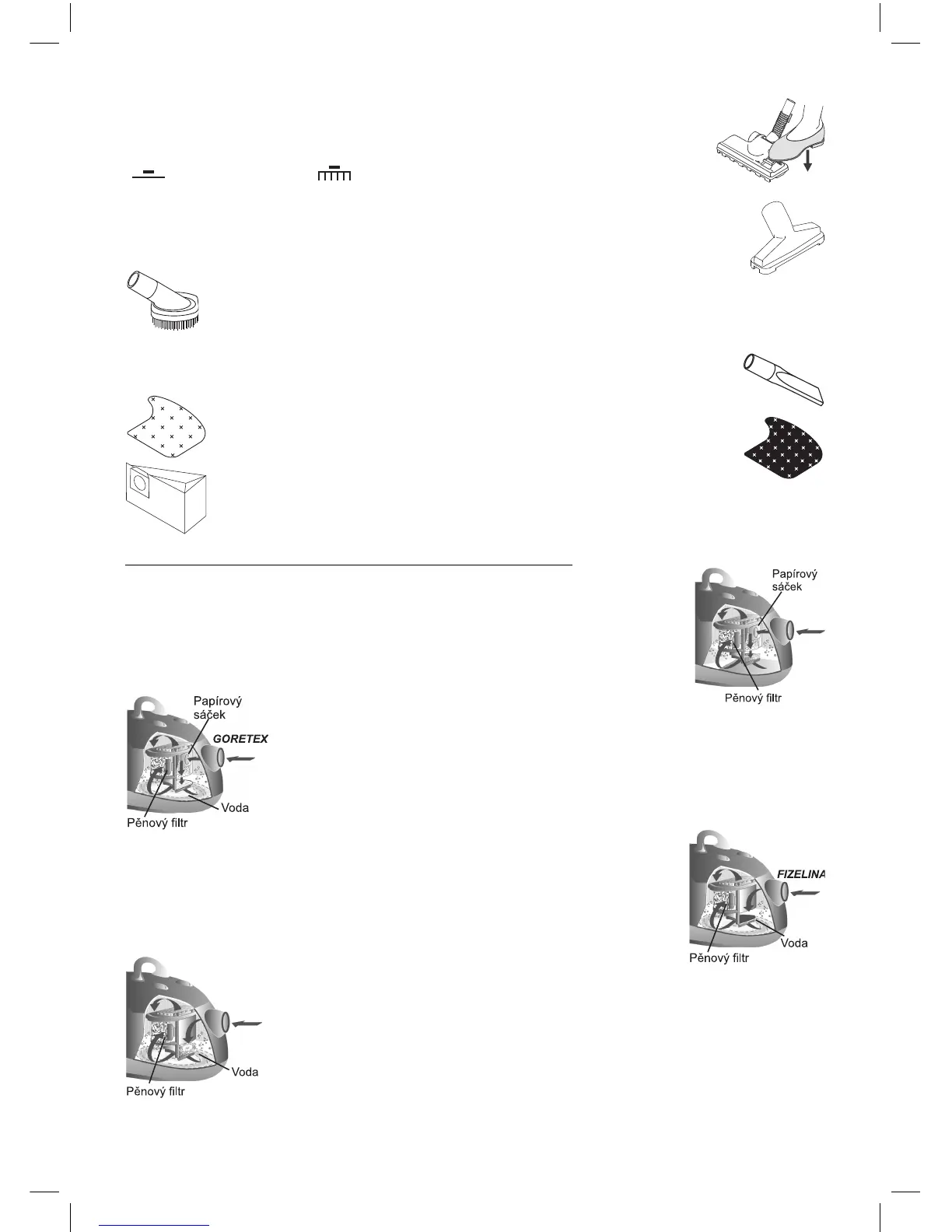 3. Vysávání do vody s použitím fi ltrační vložky FIZELINA (černá) bez papíro-