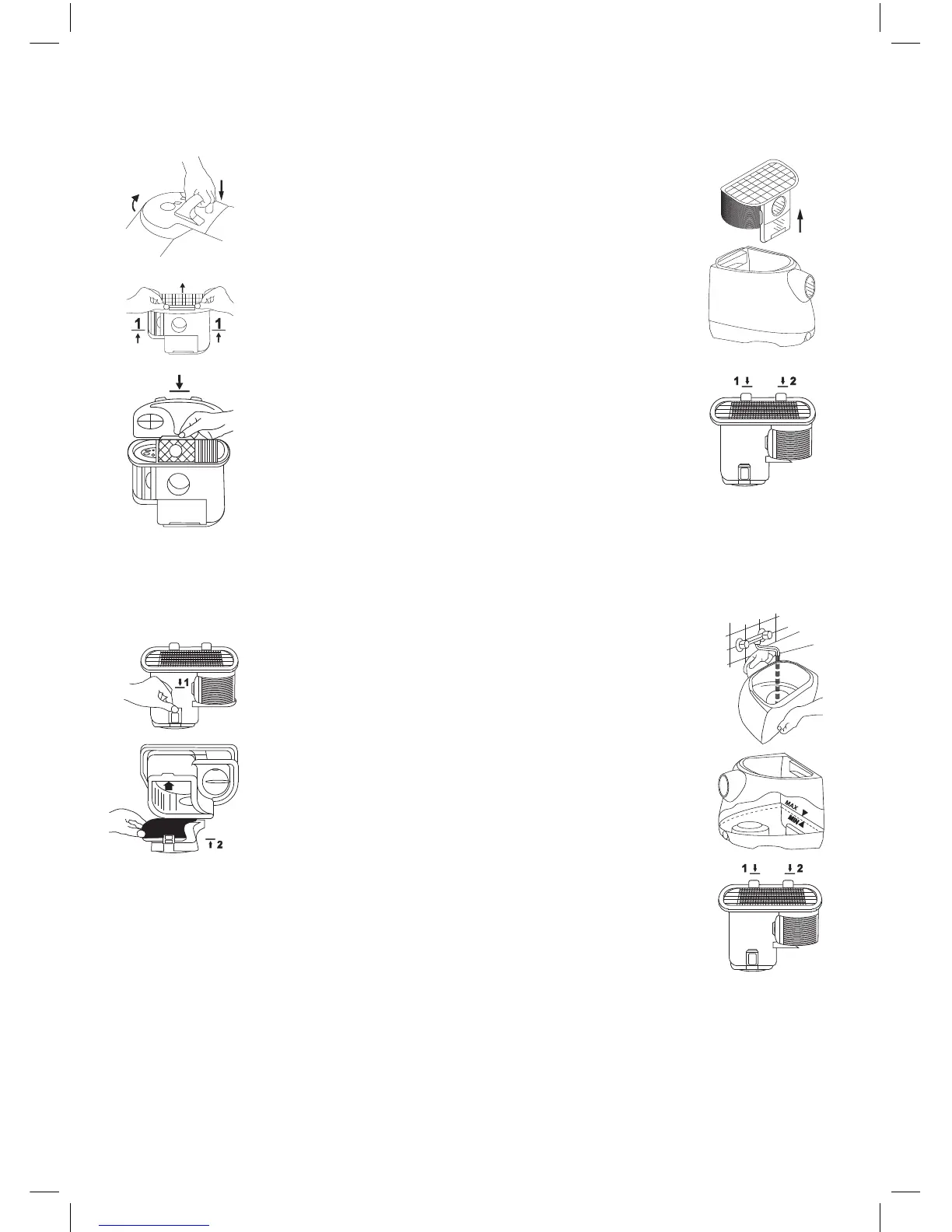 Uvolněte úchytku dna korpusu fi ltru – (1). Vložte fi ltrační vložku