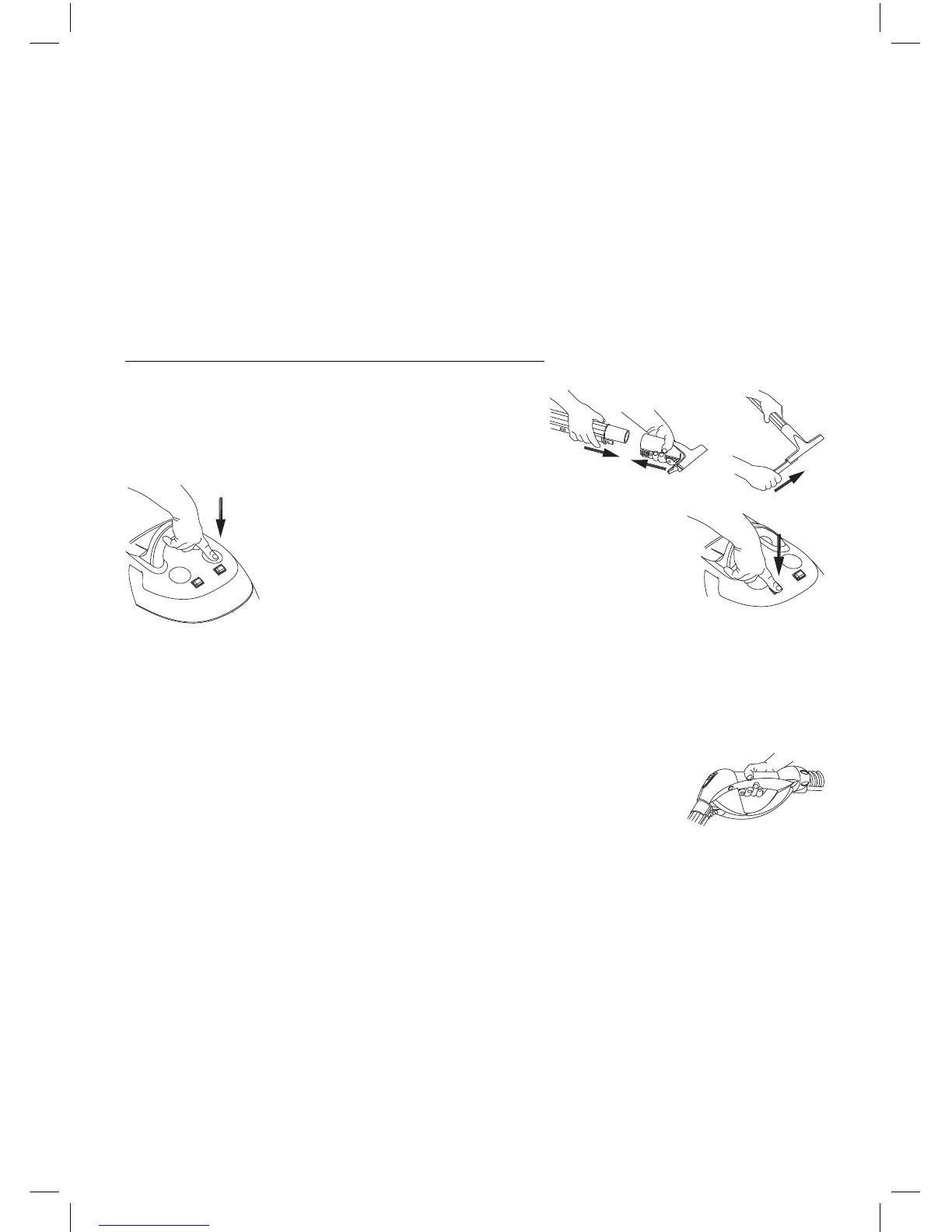 A tömlő markolatán nyomja be a gőznek a szívófej irányában történő folyását –