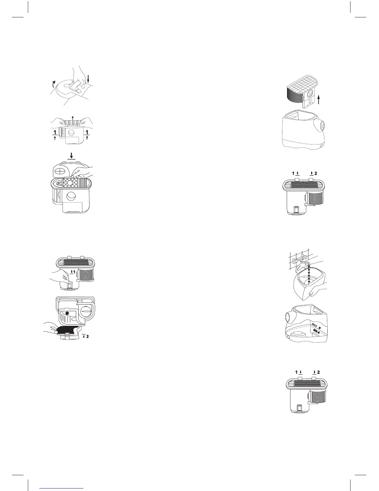 Отцепите захват в дне корпуса фильтра ( – 1). Вставьте филь-