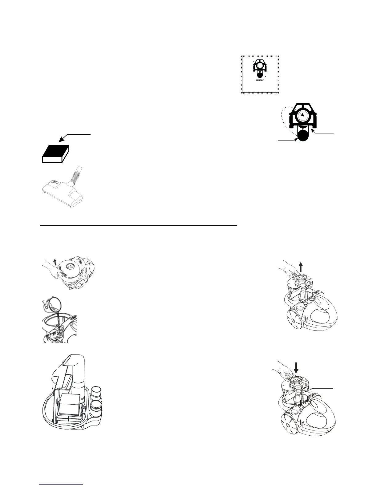 FIGYELEM!!! Nem szabad a zsákot túltelíteni. Ez a porszívó sérüléséhez