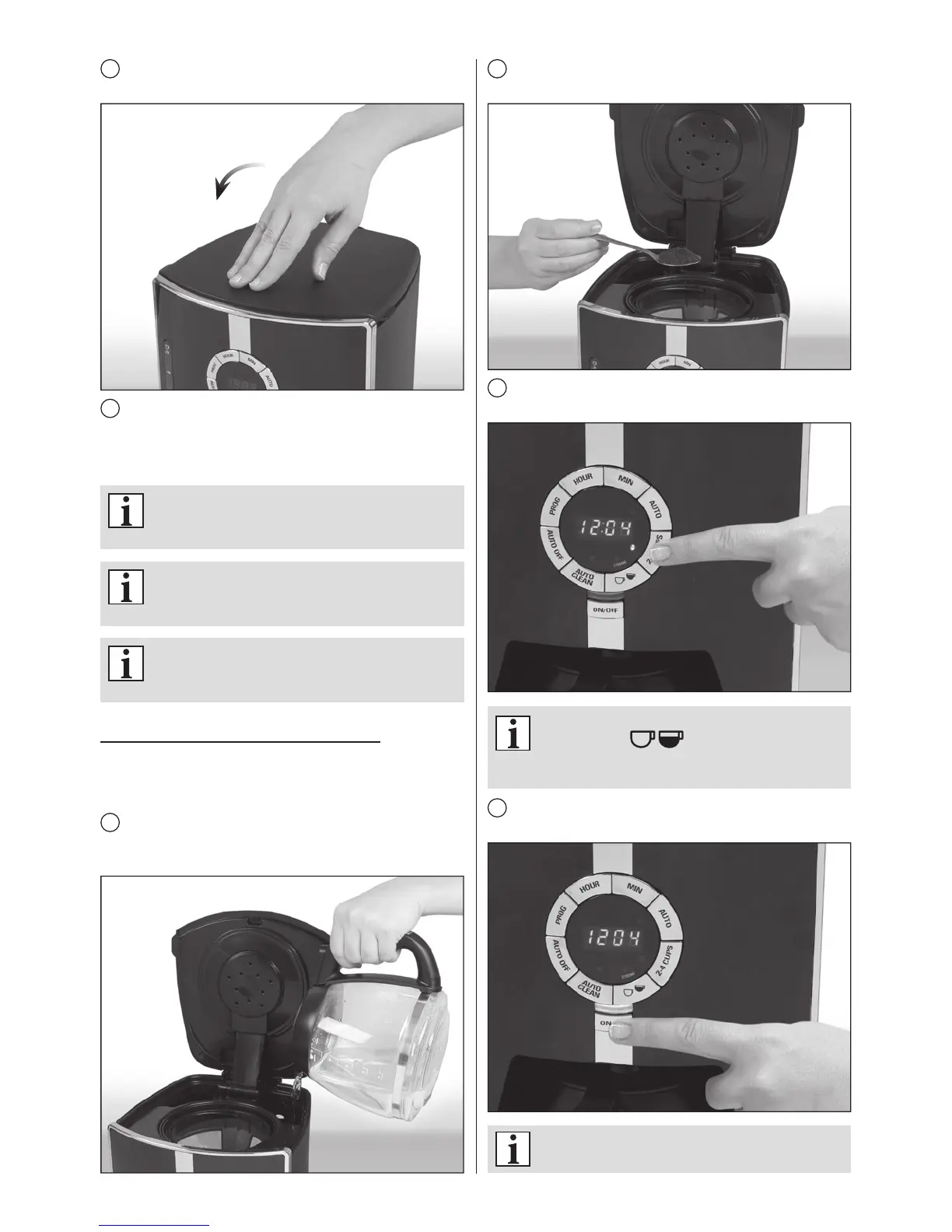 Натисніть кнопку заварювання 2-4 чашечок кави. Діод