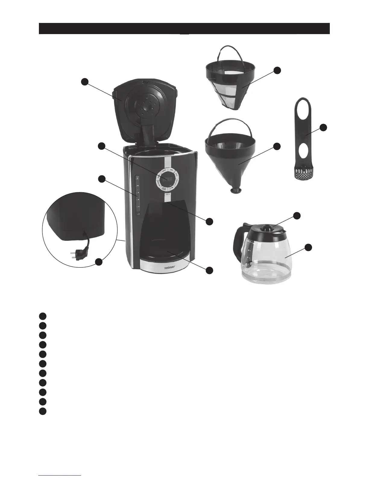 Zelmer CM1001D - Coffee Maker Features; Appliance Components Overview
