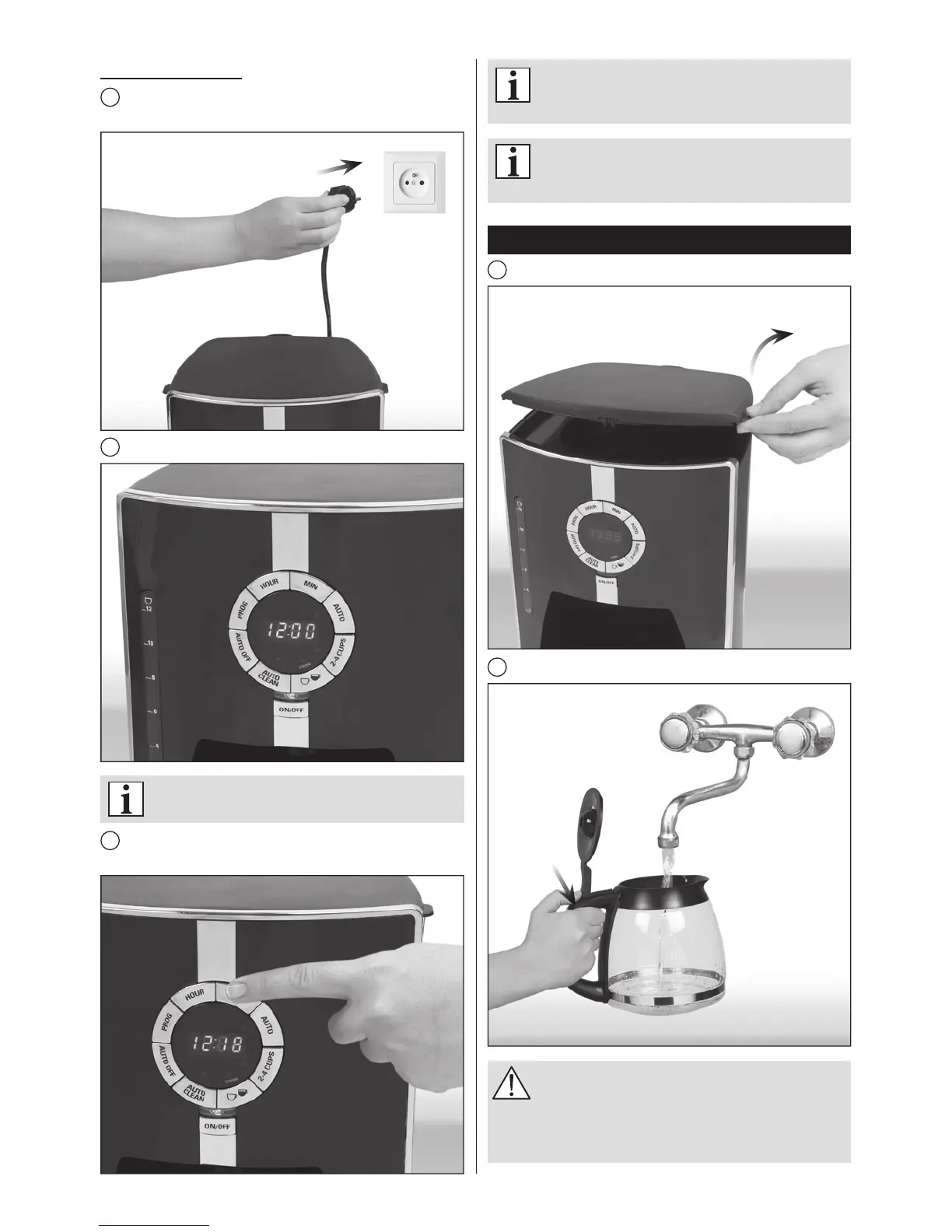 The display will show 12:00. The „:” symbol will ash.