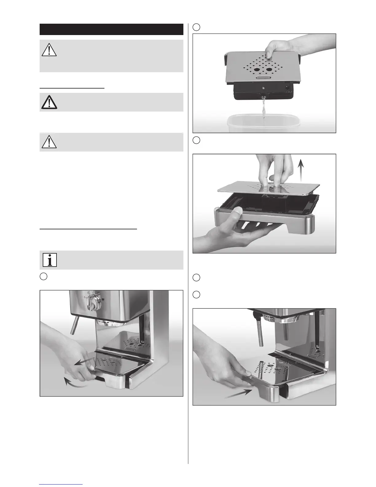 Pro vyprázdnění odkápavacího tácku lehce jej zvedněte