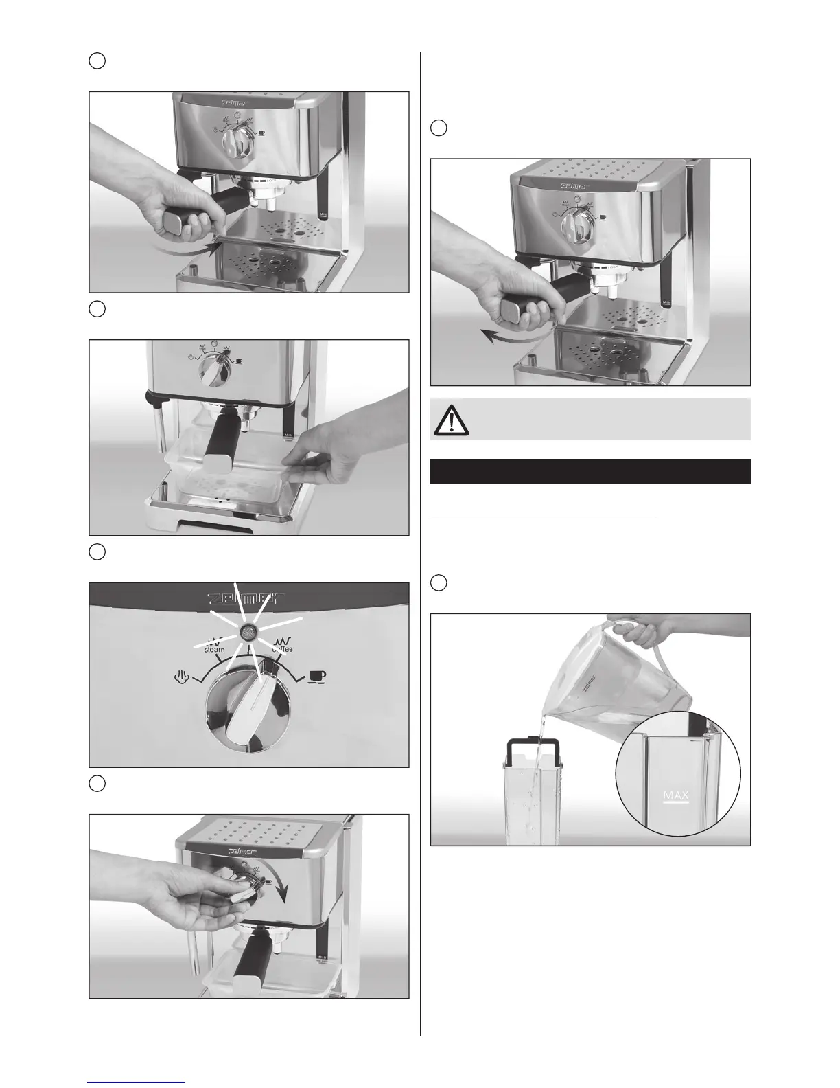 Ürítse ki a víztartályt és vegye ki a szűrő fogantyúját,