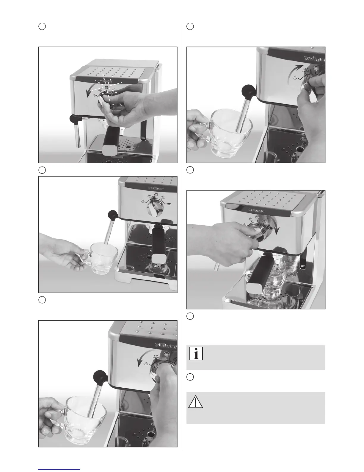 Поместите емкость под трубку подачи пара.