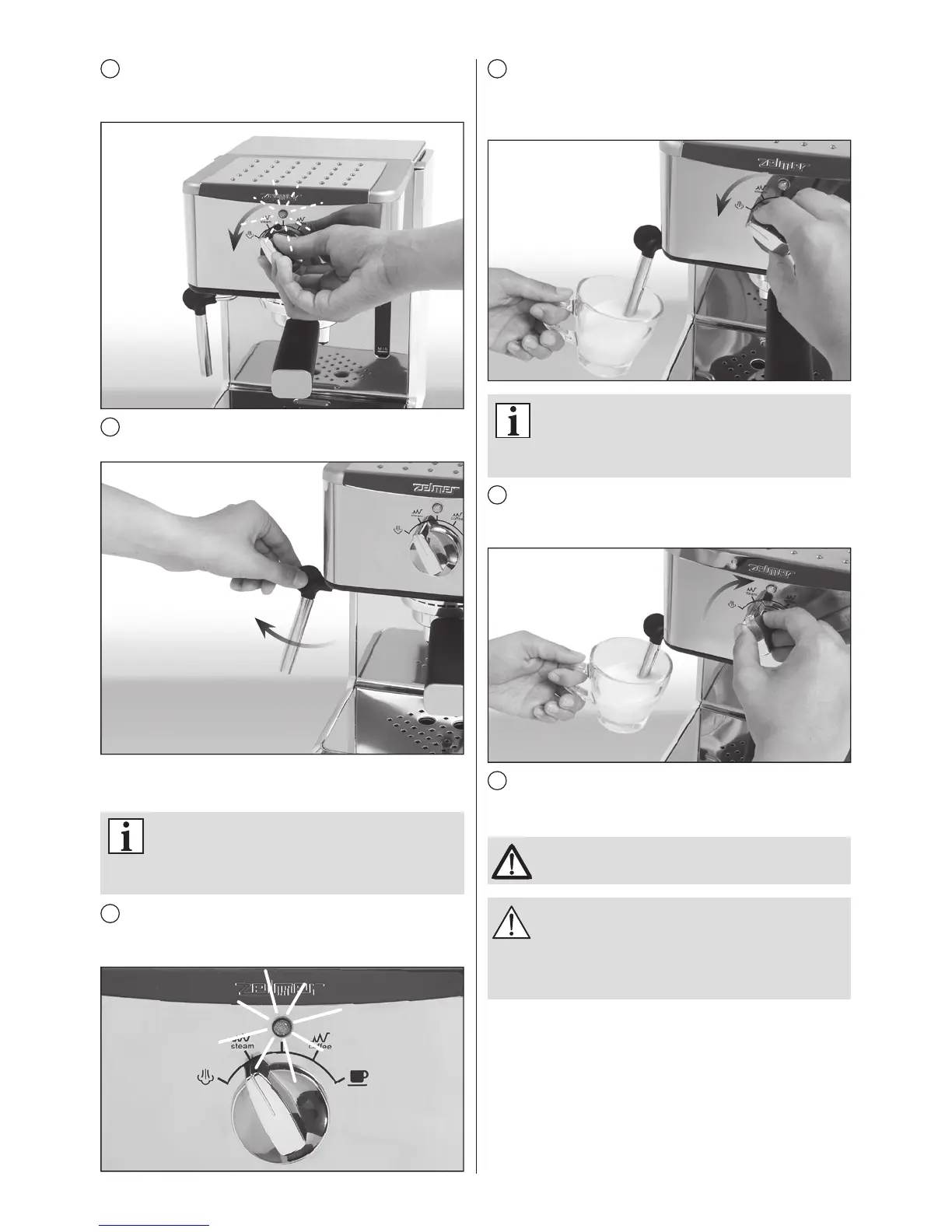 да изчистите дюзата за пара (виж ПОЧИСТВАНЕ НА