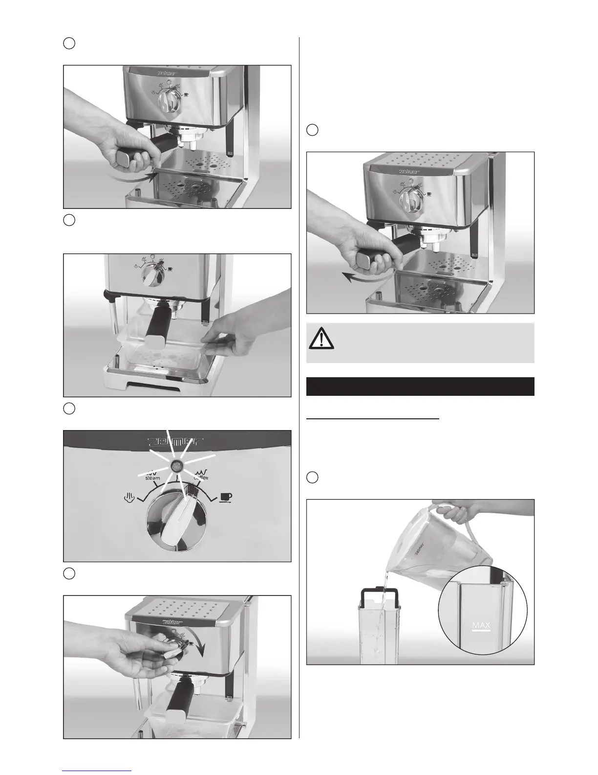 Установіть ручку фільтра-сита (без кави) у пристрій