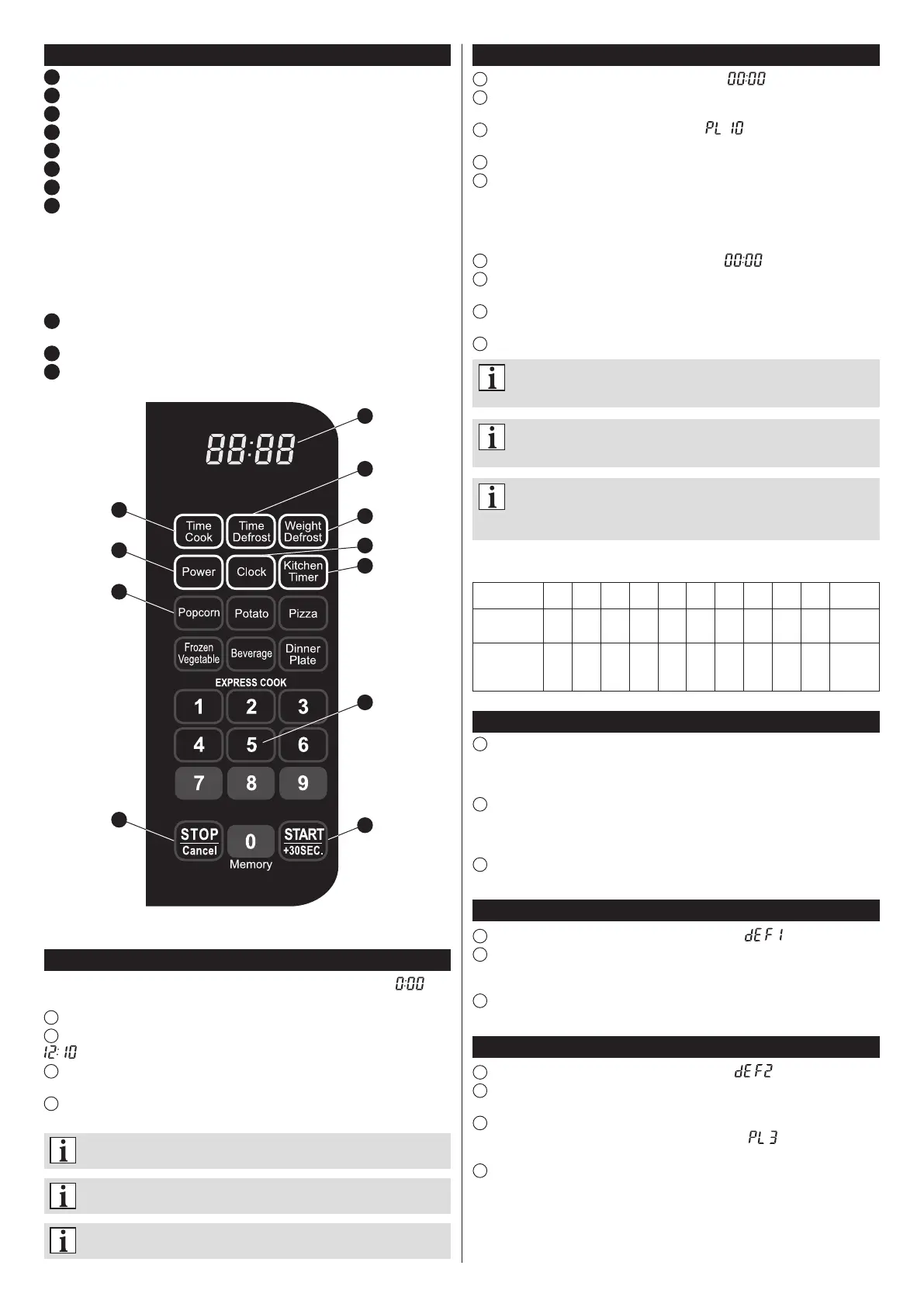 Numerickeypadwiththeexpresscookingbuttons(EXPRESS COOK–buttons1,2,3,