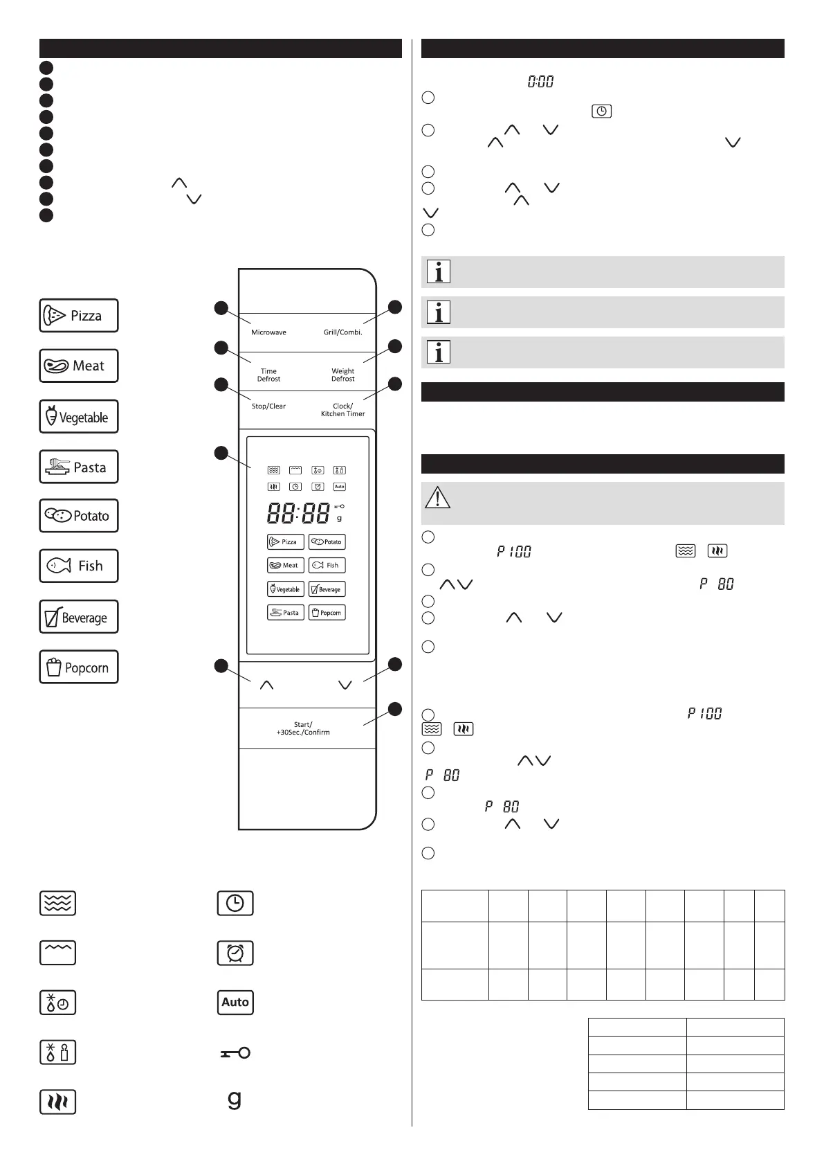 ApăsaţibutonulClock/Kitchen Timer,pentruanalizasetareaorei.Lampadecontrol