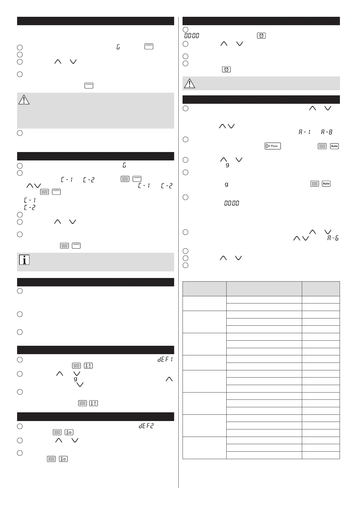 Naciskającprzyciski , wybierz:Pizza–Mięso–Warzywa–Makaron–Ziemniaki