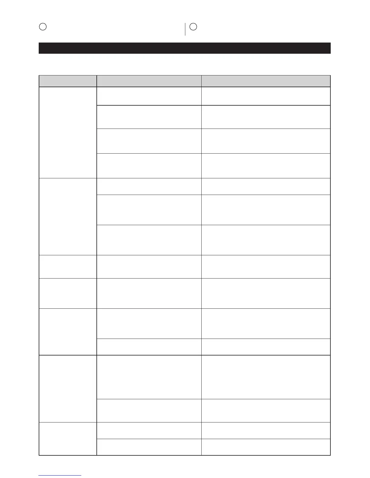 В таблицата са посочени най-честите проблеми, възможните причини за тяхната поява и начини за отстраняване.