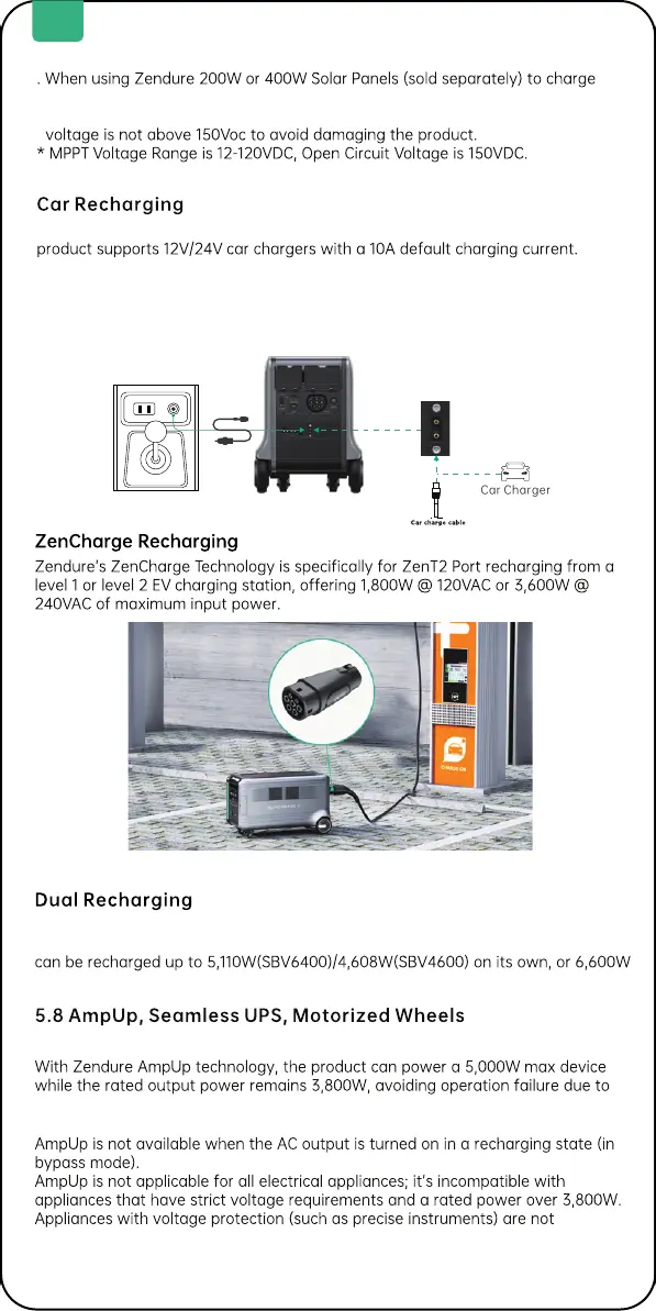 ZenCharge recharging. Combining solar and AC or ZenCharge power, SuperBase V