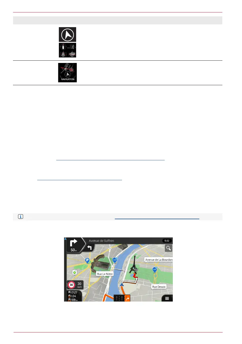 up the navigation (only if there is a Navi micro SD card in the