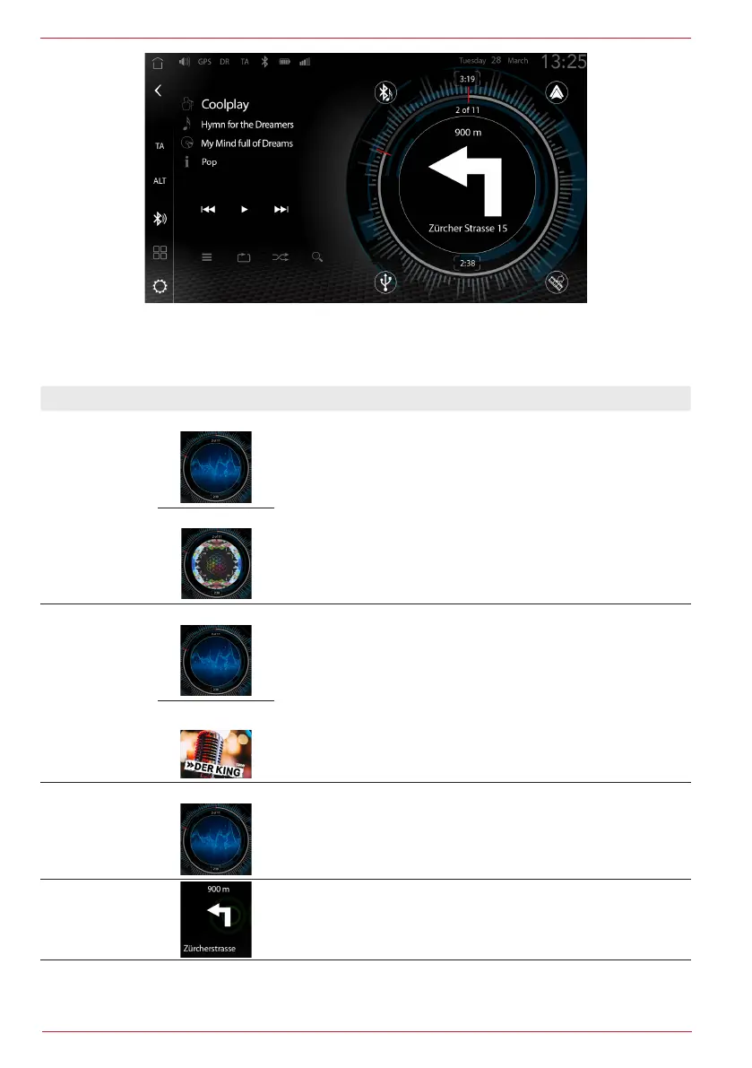 If you tap in the vicinity of the Album Cover Art or Tuner MOT Slideshow, the Navigation split screen