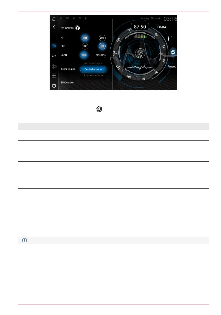2. In the Tuner control bar/toolbar, tap on to call up the FM settings.