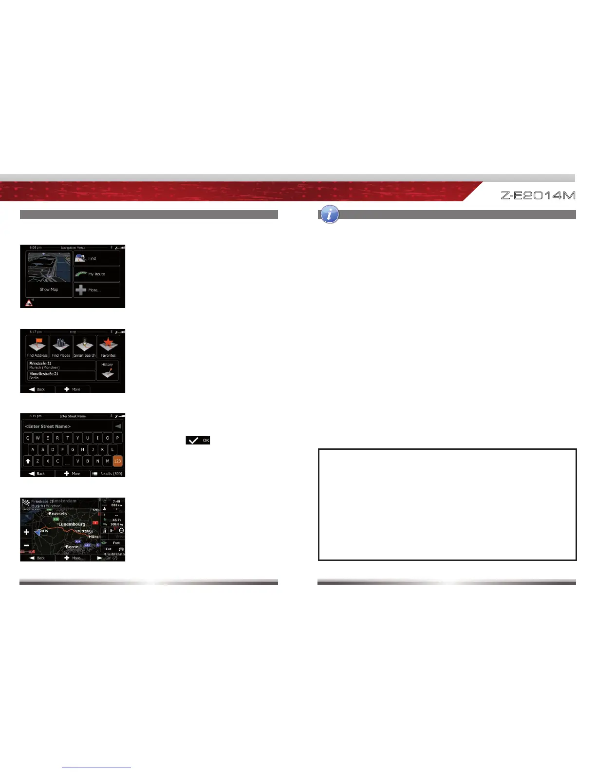 ■ For operation and detailed description of navigation features, please
