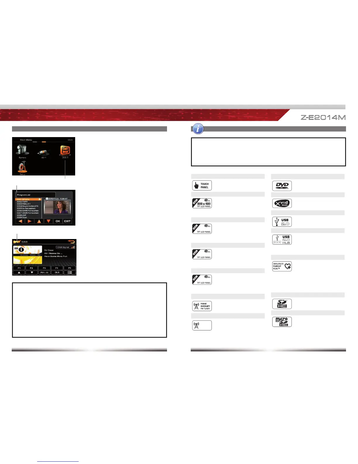■ For DVB-T or DAB+ reception you need to connect an external ZENEC