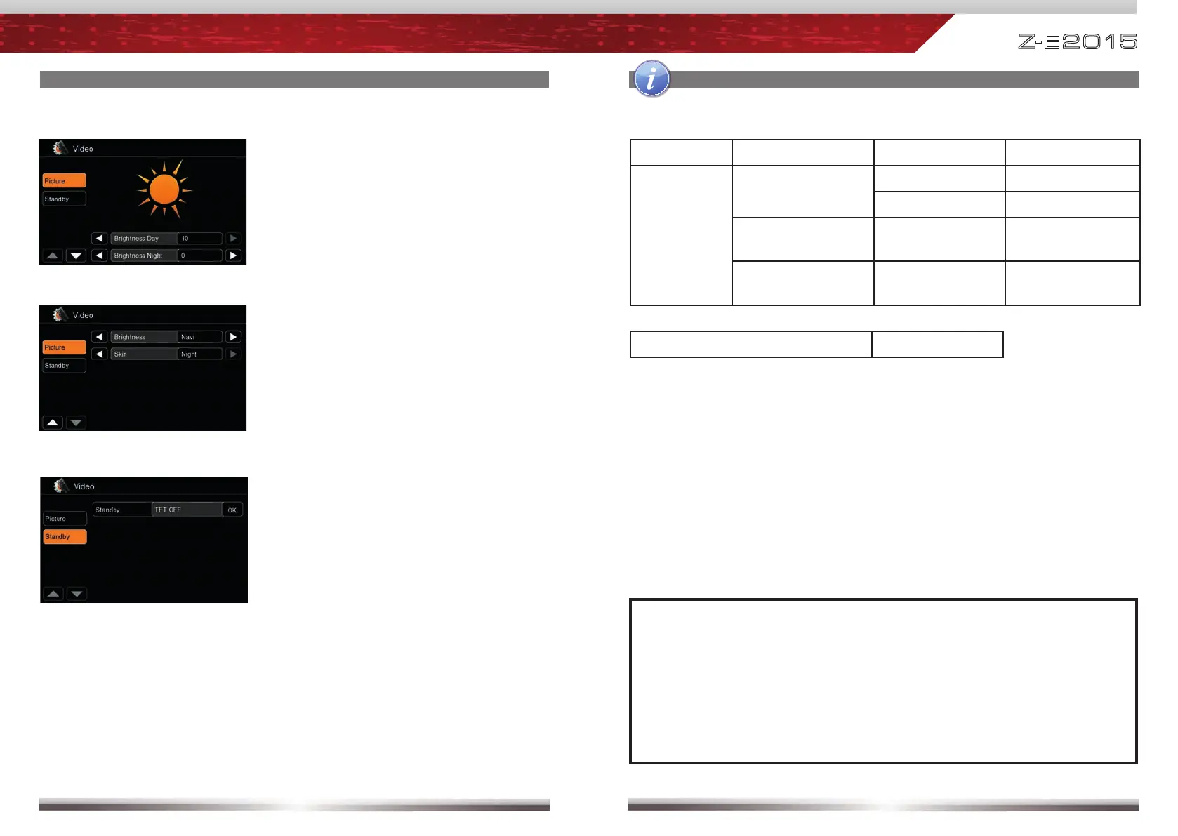 ■ When select “Navi” at brightness control option, you can set two different