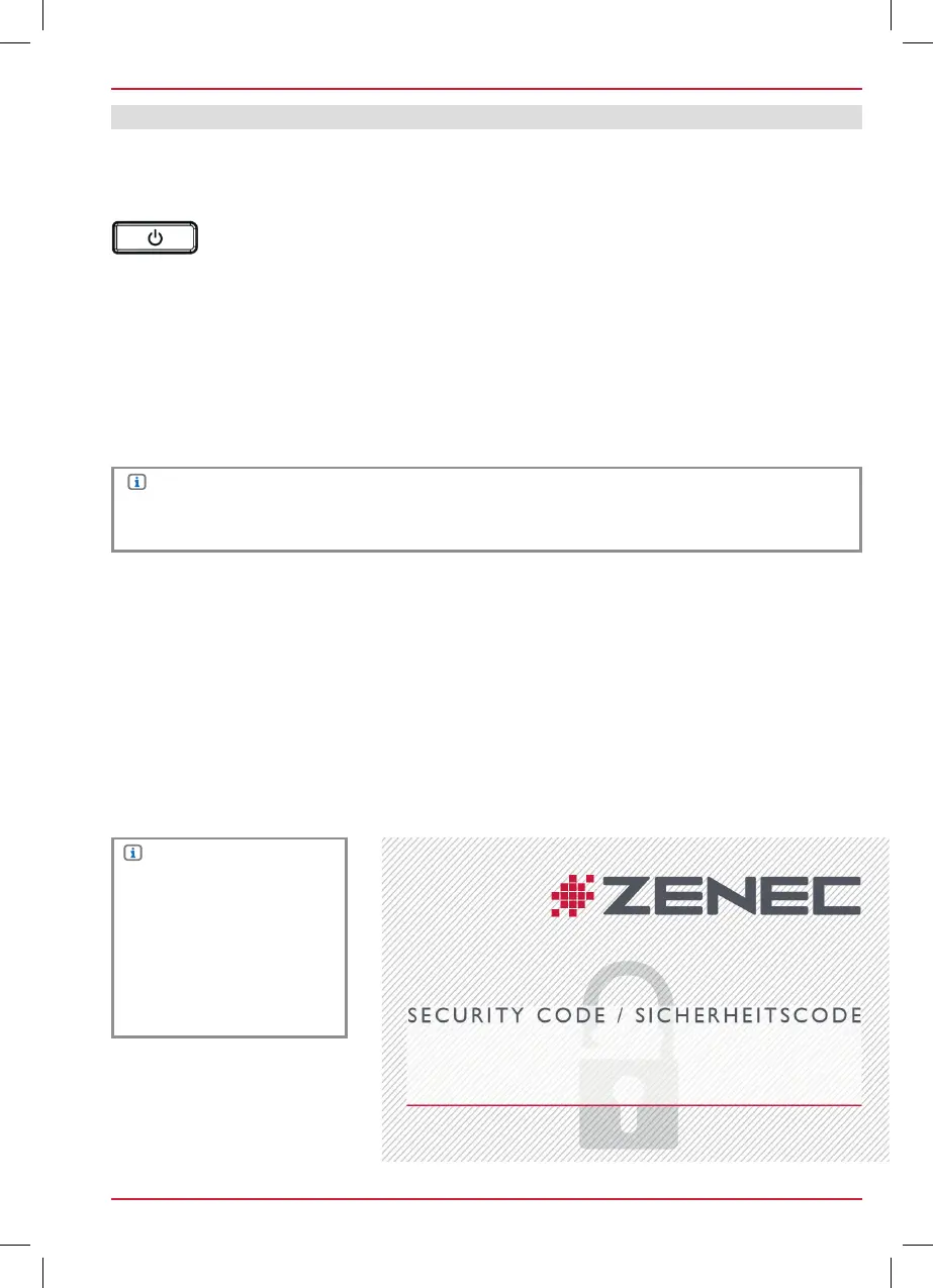 ZENEC system after interruption of the power supply you will be asked to enter your password.