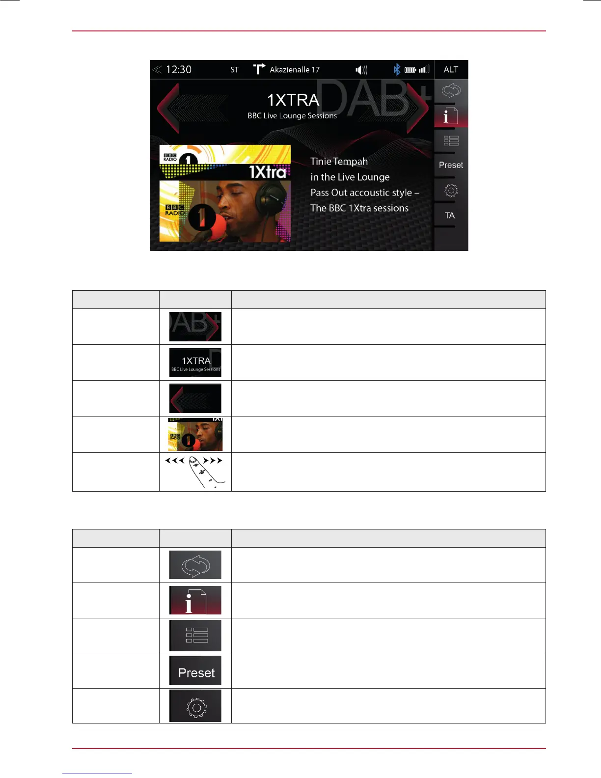 The DAB+ source menu offers a control- + operating section on the right side of the display, allowing