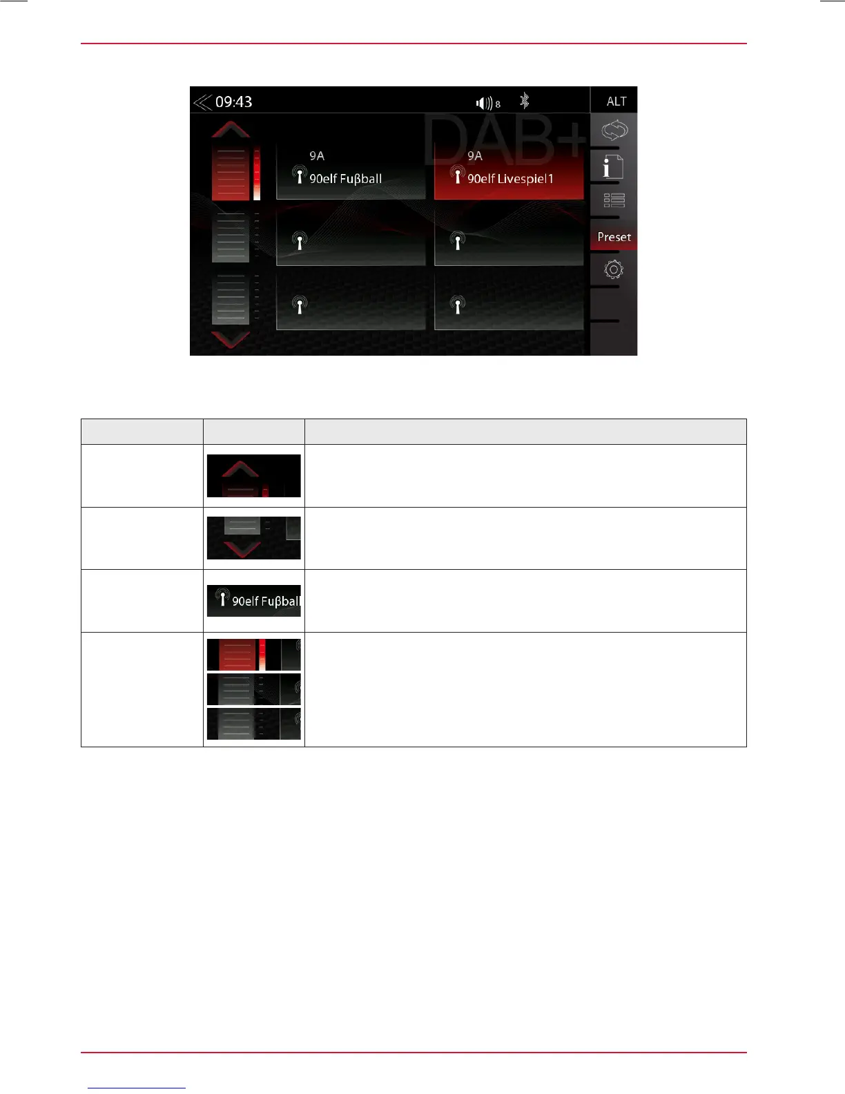 Select a previously stored DAB+ radio station by tapping on the station preset button.