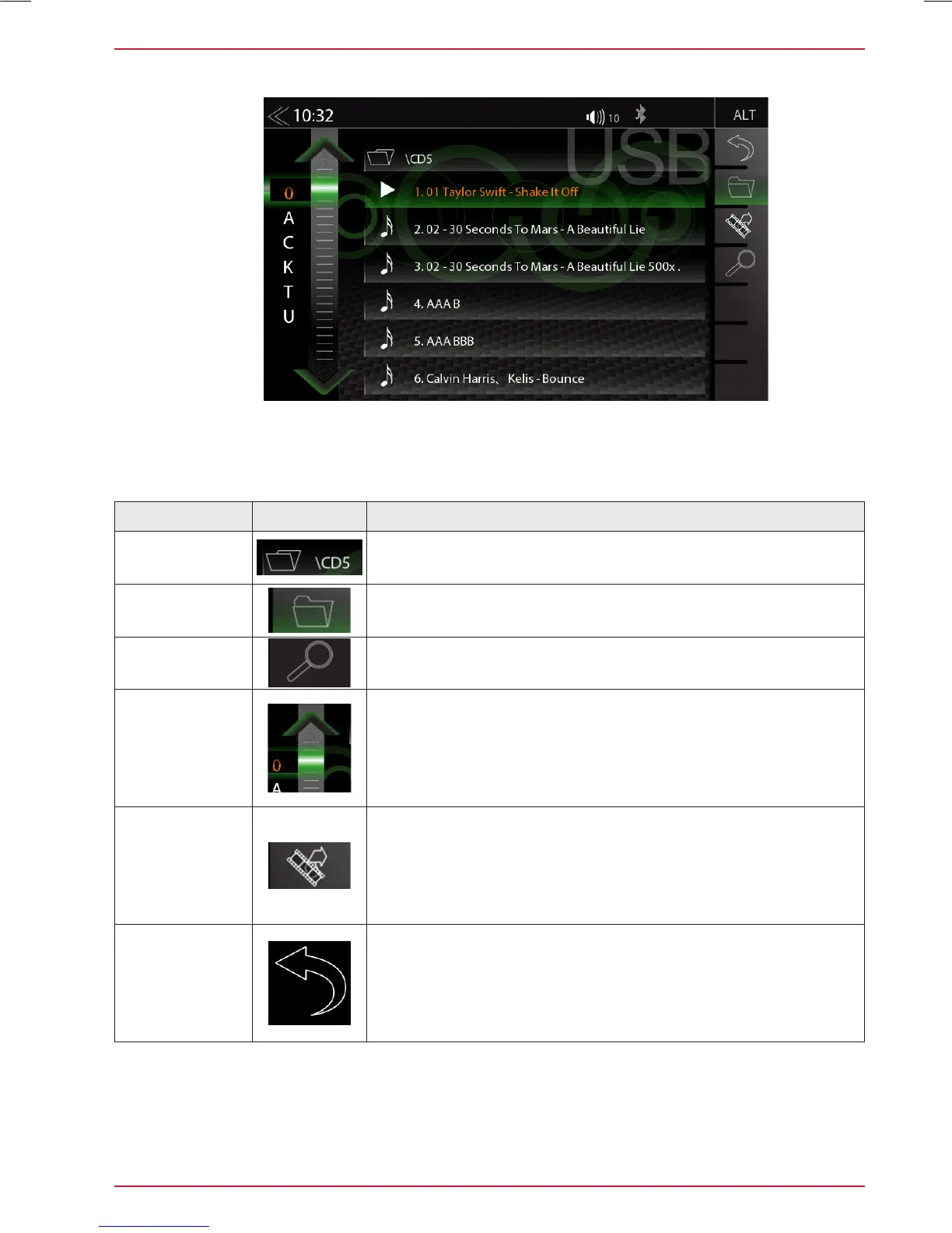 song by alphabet letter index. Selecting a track for playback is just as simple. Vertically swipe on the