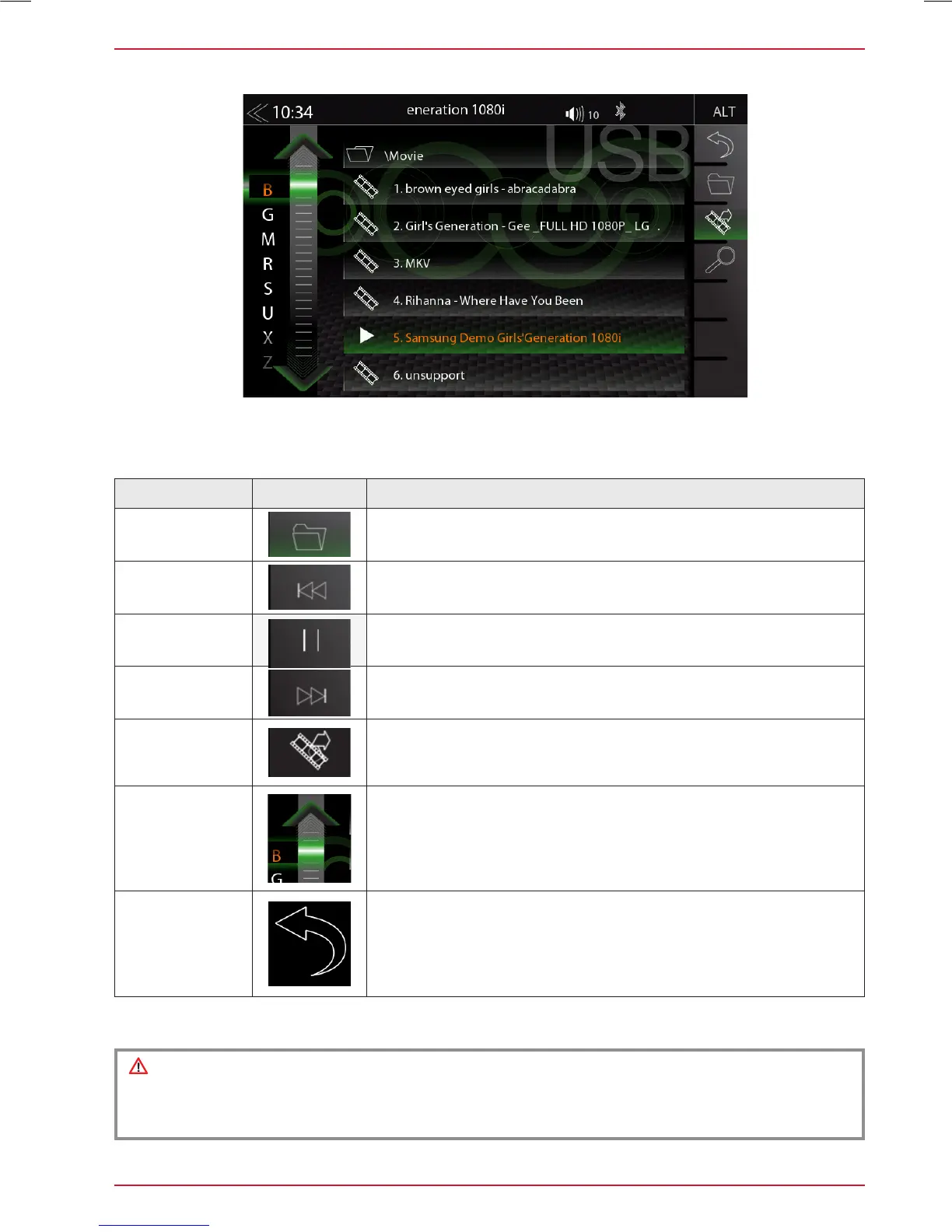 Playlist (Video) displays the video files on the USB/DVD/SD data carrier with their file name. In this