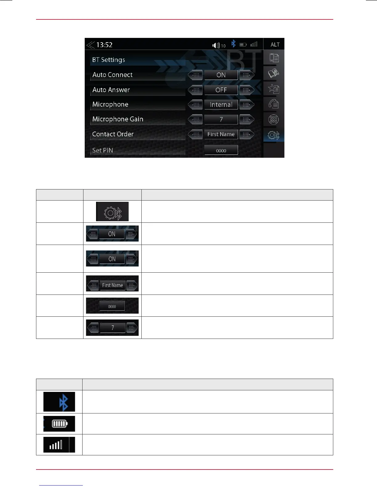 On the Bluetooth setup page you can adjust settings for Bluetooth operation. Press the appropriate
